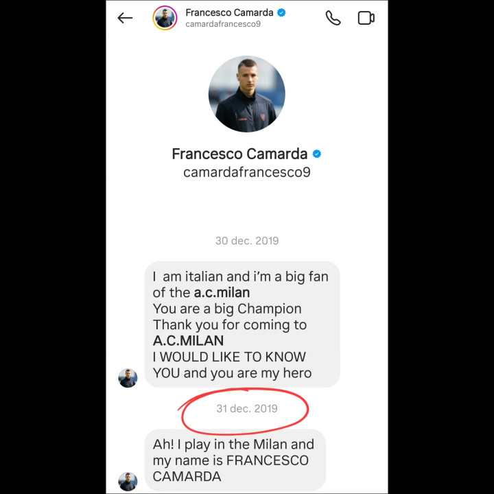 比赛扫尾后第二天,伊布更新社媒,晒出一张卡马尔达在2019年与其的聊天截屏。卡马尔达在与伊布的聊天中写谈:我是意大利东谈主,我是AC米兰的头号球迷。你是一位伟大的冠军,谢谢你来到AC米兰。我很思意识你,你是我的英杰。我在AC米兰踢球,我的名字是弗朗切斯科-卡马尔达。