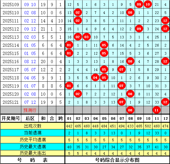 和值跨度:上期和值开出47,对比第2025120期和值下跌了60个点位,本期瞻望和值在大号区域热出,看好出当今105周围。