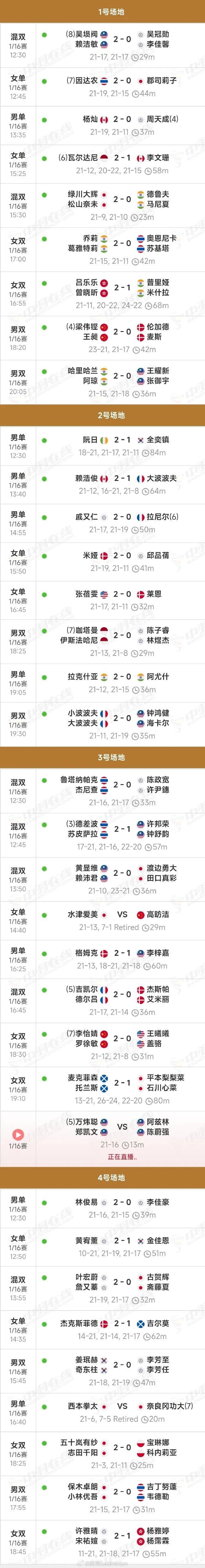 女单:高昉洁(退赛)0-1(13-21,1-7)水津爱好意思