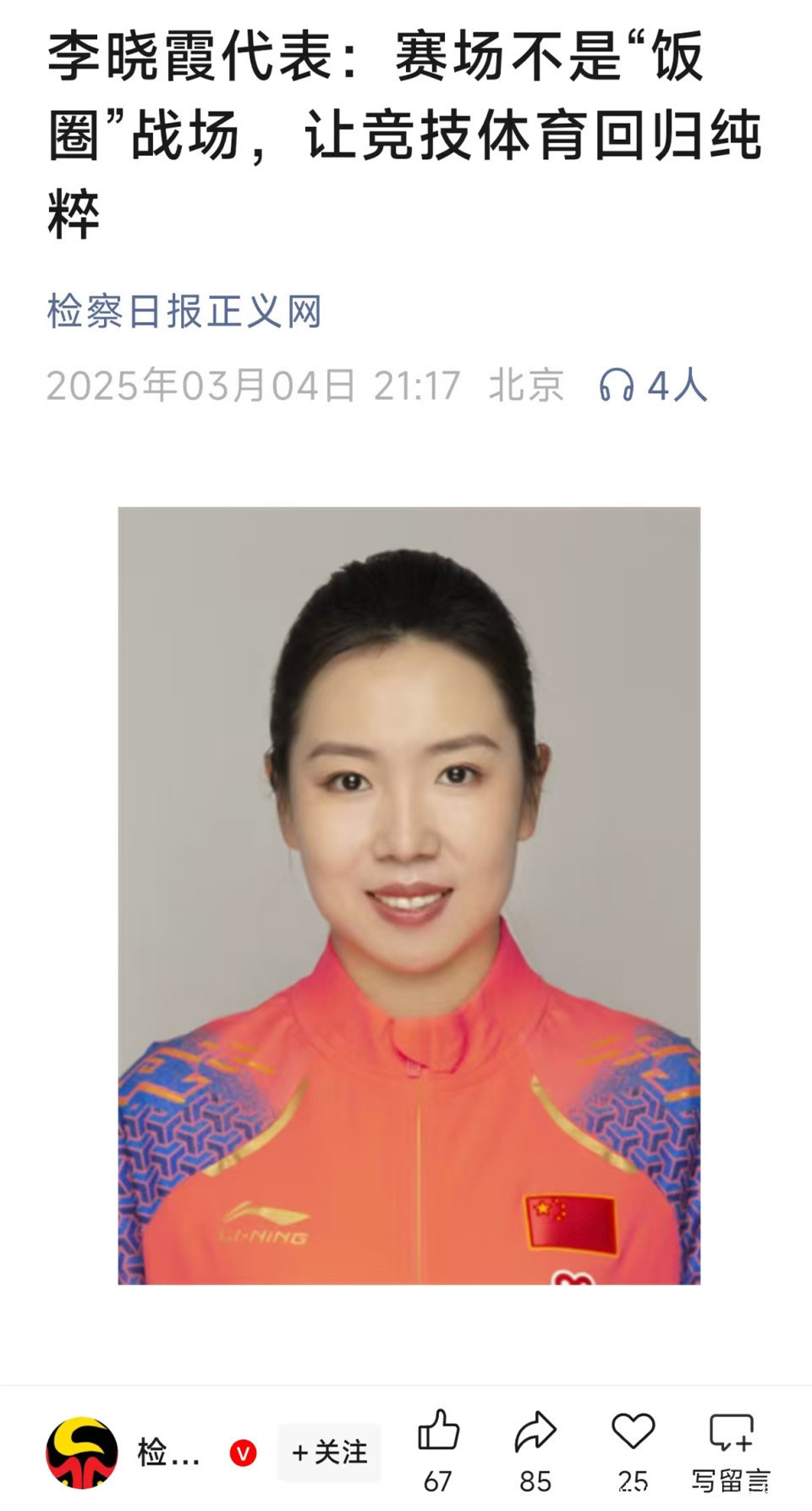 提案激发烧议后,公论多量倾向李晓霞的“强项态度”,而非刘国梁“讲求不雅赛倡议书”的平和命令,究其原因,刘国梁的决议虽具标记真义,却短少具体捏手;而李晓霞的“径直告状”“公益诉讼协同”等举措,更具可操作性,这种互异背后,实则是“行业自律”与“法治化处理”的理念分野,中国体育永恒以来存在“家法大于王法”的处理惯性,协会、俱乐部常以里面处罚替代法律追责,但饭圈乱象早已超过体育圈层,成为社会问题,若仅靠行业倡议,无异于隔靴抓痒,李晓霞以公益诉讼稽查宣传形象大使的身份,激动稽查机关介入,正是将体育问题纳入法治化轨谈的破冰之举