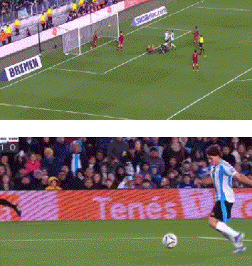 阿根廷队第二个进球:阿根廷赢得前场左侧定位球契机,梅西主罚快速将球往左前哨送出精妙直塞,冈萨雷斯快速跟进,在禁区左侧底线隔邻送出半高球至门前,劳塔罗在门前鱼跃冲顶到手。不错说这球的重要在于梅西的精彩蓄意,莫得梅西的快速蓄意,这球就不会存在。梅西立大功。