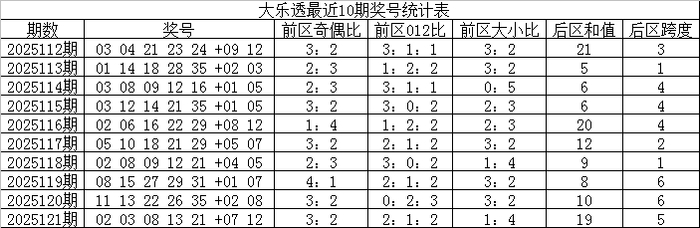 012路分析:上期前区奖号012路比为2:1:2,最近两周2路前区奖号走势较热,1路前区奖号发扬较冷。
