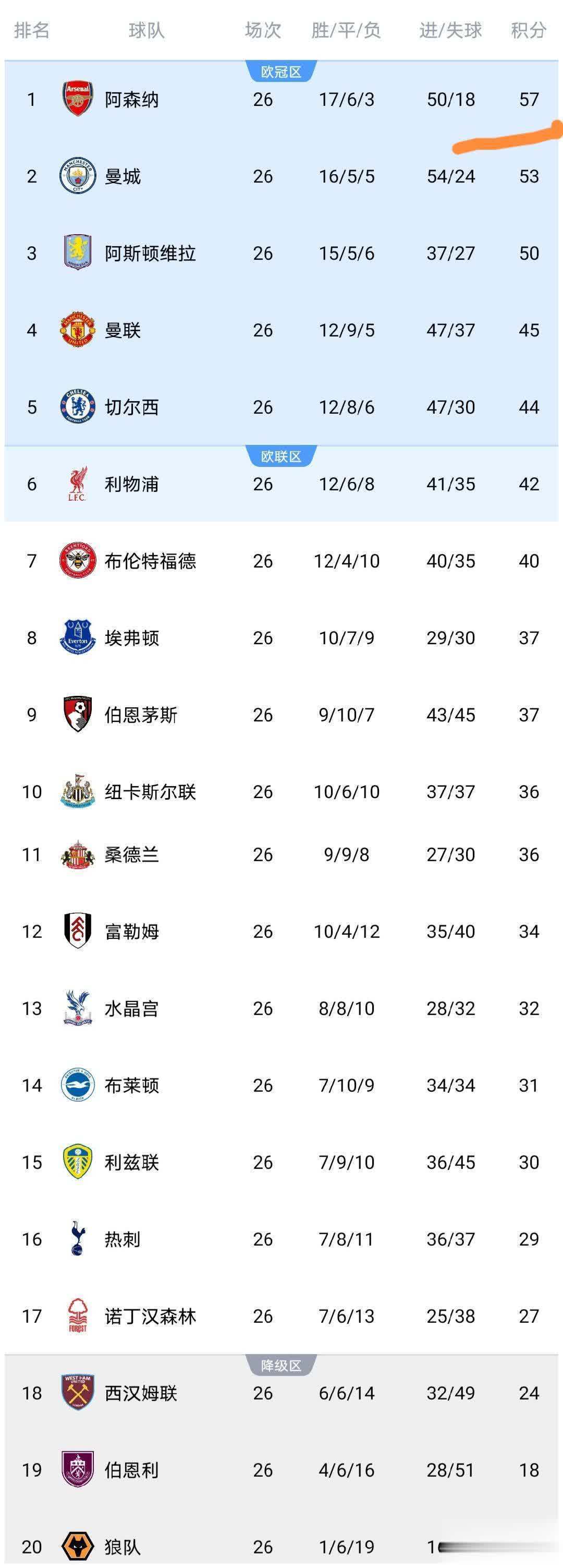 今天凌晨,英超第26轮截止了临了一场的较量,阿森纳出战,这场比赛之后,通盘英超球队王人也曾踢收场第26轮的比赛,英超积分榜也随之发生变化,咱们来望望。