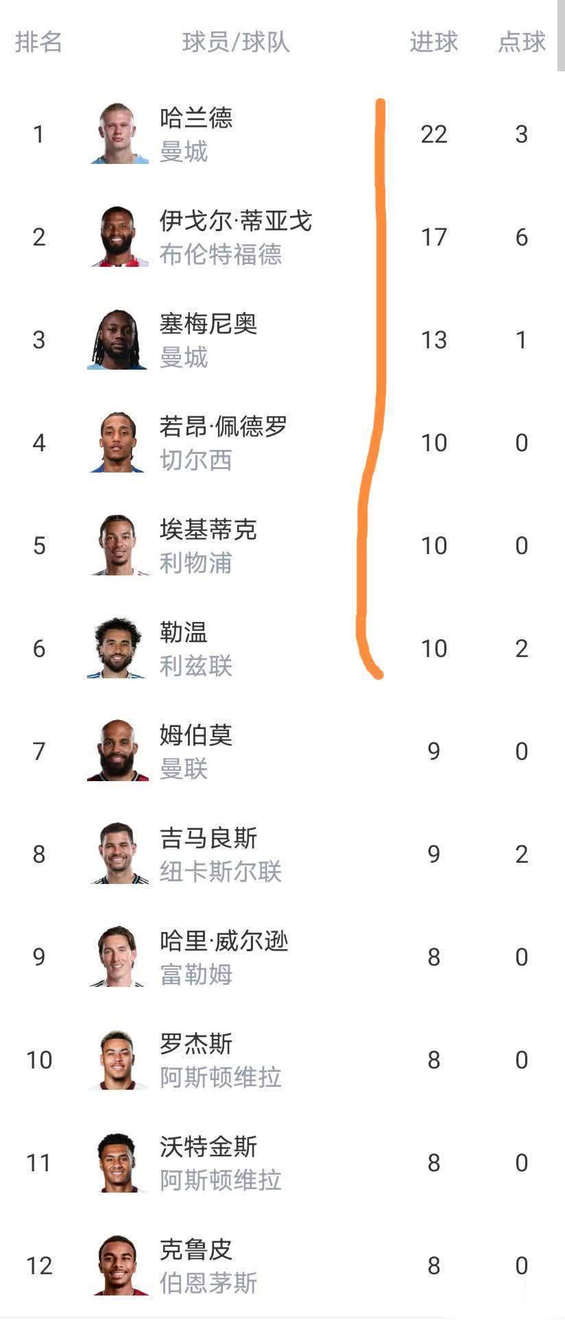 弓手榜方面,埃基蒂克、勒温等6名球员进球上双的,哈兰德5球上风领跑金靴的争夺。